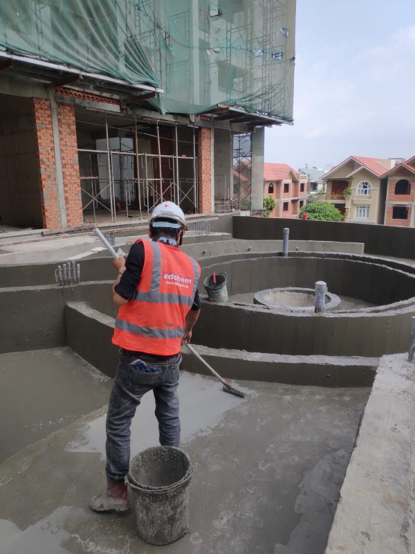 Bước 2: Tiến hành chống thấm hồ bơi